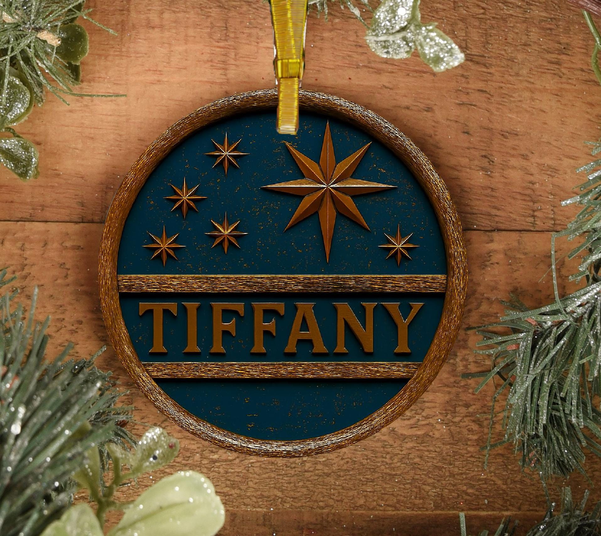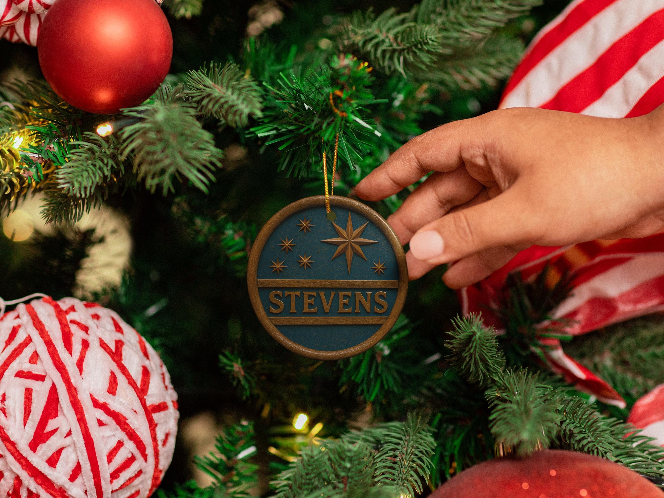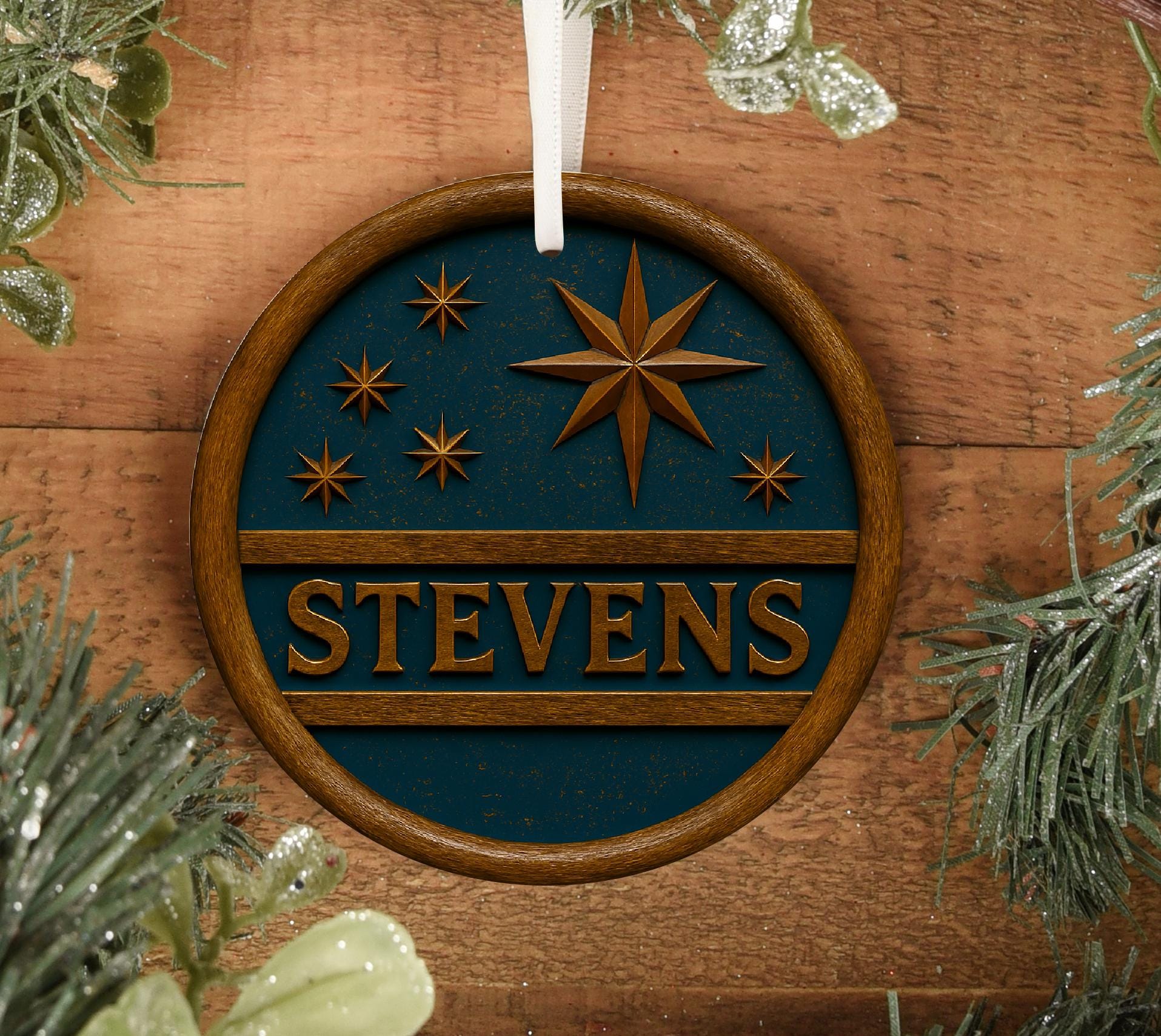 Personalized Nativity Christmas Ornament Metal Allow Manger Scene with the Look of 3D Wood Carved Finish (Not made of wood) 3.5" round and about .025" thick. Metal ornaments are very lightweight and unbreakable. They will not weigh down the branches. Perfect to pass down from generation to generation.
